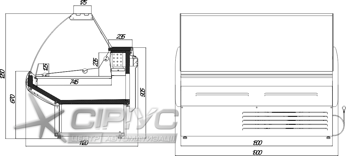 Данное оборудование производится со встроенным агрегатом, фронтальным гнутым каленным стеклом. Панель управления оснащена термоконтроллером Carel с функцией автоматической оттайки. Для более ефективной работы - оборудование произведено с двумя тенами, что имеет огромное преимущество на ряду с подобными витринами других производителей. Демонстрационная часть и полка продавца сделаны из нержавеющей стали. Шторки из оргстекла, стационарная розетка - 220 В. Корпус - из крашеного оцинкованного металла 0,65 миллиметров с пенополиуретановым заполнением..