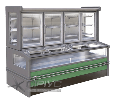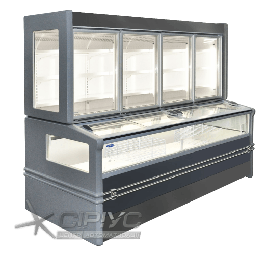 Двохярусний морозильний бонет "Аляска Combi" для магазинів самообслуговування. Бонета розрахована під виносний холод, але може постачатися з вбудованим холодоагрегатом.
