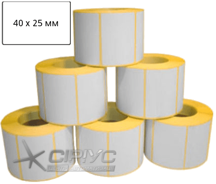 Термоетикетка 40 х 25 призначена для друку на принтерах етикеток штрих-коду: Argox, Datecs, Godex, TSC, Zebra. Також підходить для ваг з термодруком етикеток: "ШТРИХ ПРИНТ", CAS, Mettler-Toledo.
