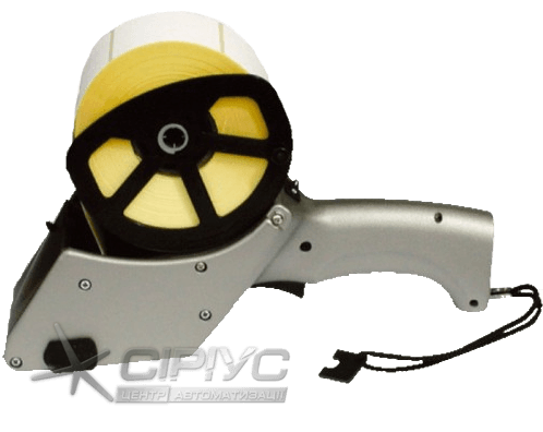 Дуже зручний в роботі: одним натисканням кнопки аплікатор відділяє рівно одну етикетку і за допомогою мякго гумового валика наносить на поверхню. Робота автоматизована.