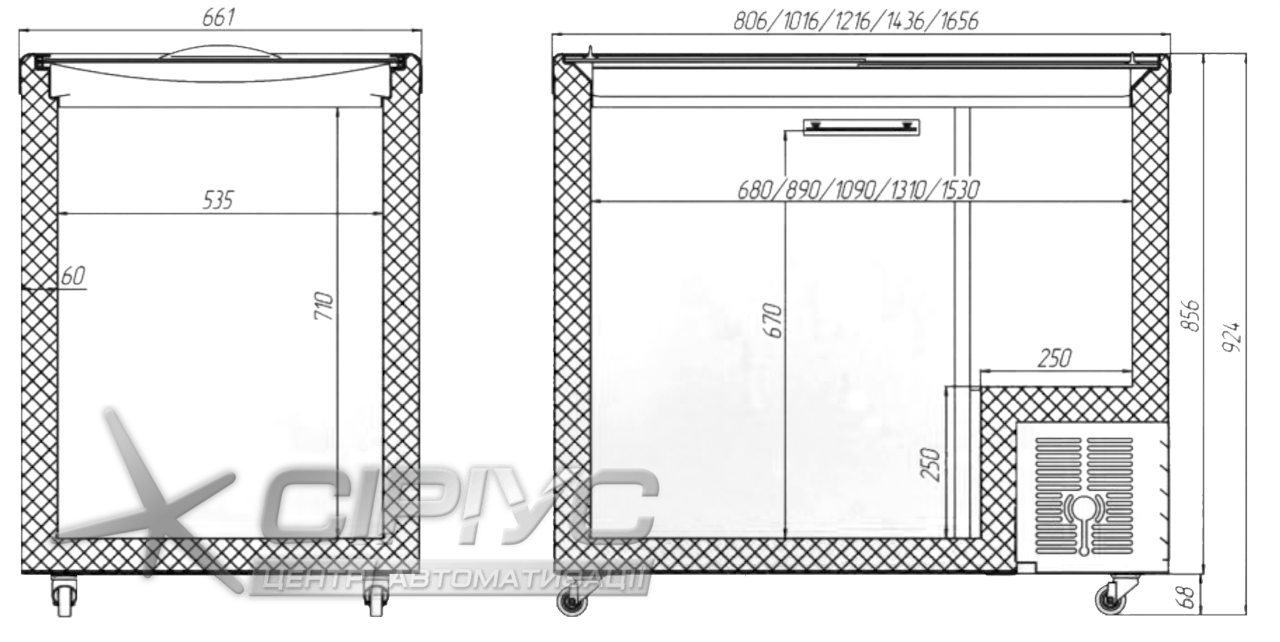 - Опції: електронний датчик температури, пересувна платформа для зручної вуличної торгівлі (на колесах діам. 125 мм).
