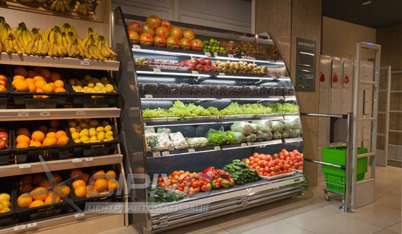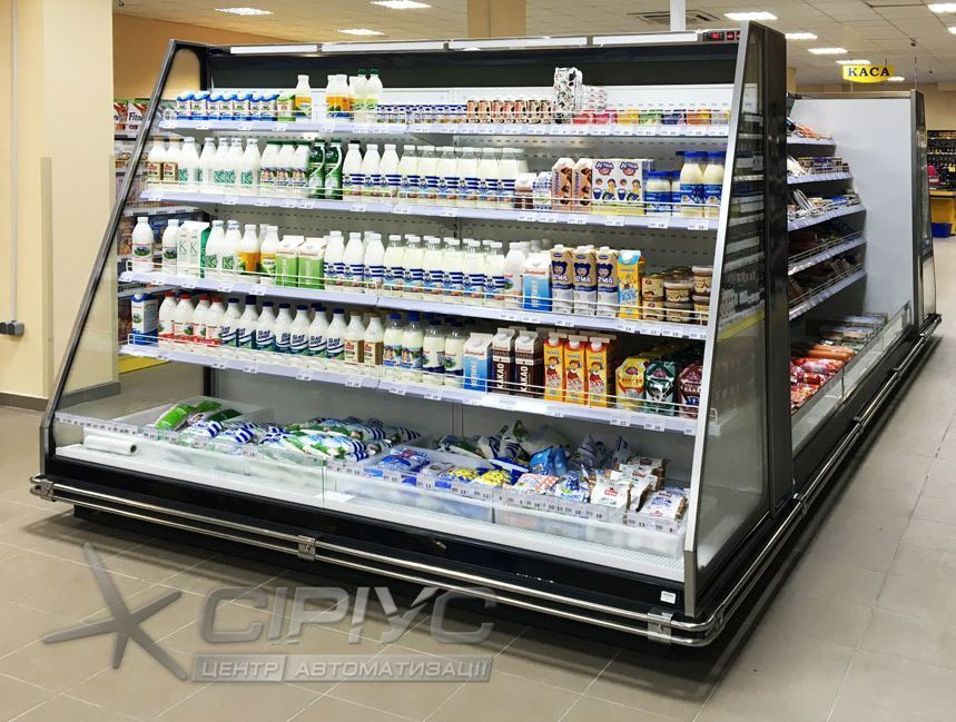 Холодильна гірка може встановлюватися в одну лінію, в окремі торгові секції з торцевими елементами ("острів", "куб").