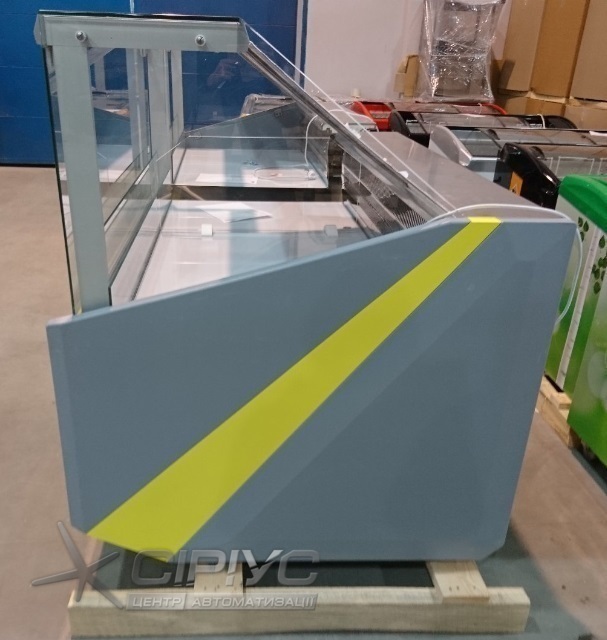 Особливістю цієї вітрини є стильний дизайн, який розроблений для магазинів середнього і преміум сегменту. Вітрина оснащена динамічною системою охолодження, завдяки якій всі продукти охолоджуються рівномірно. Фронтальне гартоване скло має додатковий обдув, бічне скло виготовлене зі склопакетів. Полкиця продавця і демонстраційна частина виготовлені з нержавіючої сталі. Вітрина оснащена енергозберігаючої LED-підсвіткою (відтінок нейтральний білий). Є система підйому фронтального скла за допомогою газліфта, завдяки цьому доглядати за вітриною легко. Є місткий бокс для зберігання продуктів. Обдув переднього скла.
