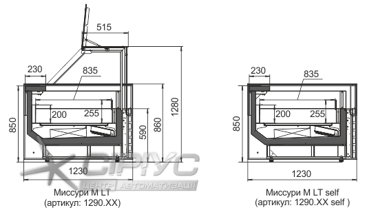 Вітрини "Міссурі М LT" випускаються в двох версіях: кубічний дизайн з високим закритим склінням і склопакетом що обігрівається та відкрита Self версія.