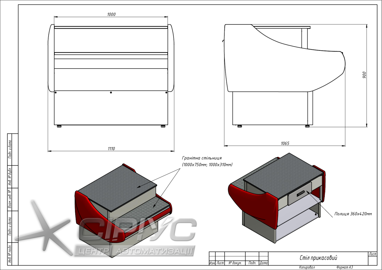 Для зручності прилавок оснащений висувним ящиком з доводчиком, а також гранітної стільницею.