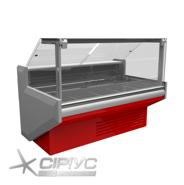 Дане обладнання виробляється з вбудованим агрегатом, фронтальним розпеченим склом. Панель управління оснащена термоконтролер Carel з функцією автоматичного відтаювання. Для більш ефективної роботи - обладнання вироблено з двома тенами, що має величезну перевагу на ряду з такими вітринами інших виробників. Демонстраційна частина і полка продавця зроблені з нержавіючої сталі. Шторки з оргскла, стаціонарна розетка - 220 В. Корпус - з фарбованого оцинкованого металу 0,65 міліметрів з пенополіуретановим заповненням.
