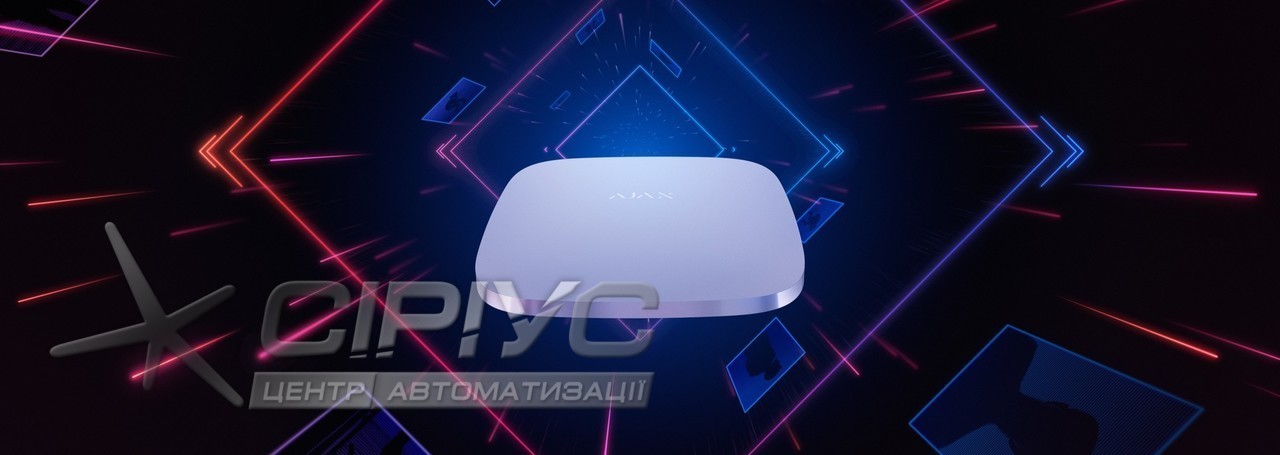 Інтелектуальна централь Hub — ключовий елемент системи безпеки Ajax. Прилад контролює роботу всіх датчиків Ajax і миттєво відправляє сигнал тривоги власнику та на пульт охорони.
